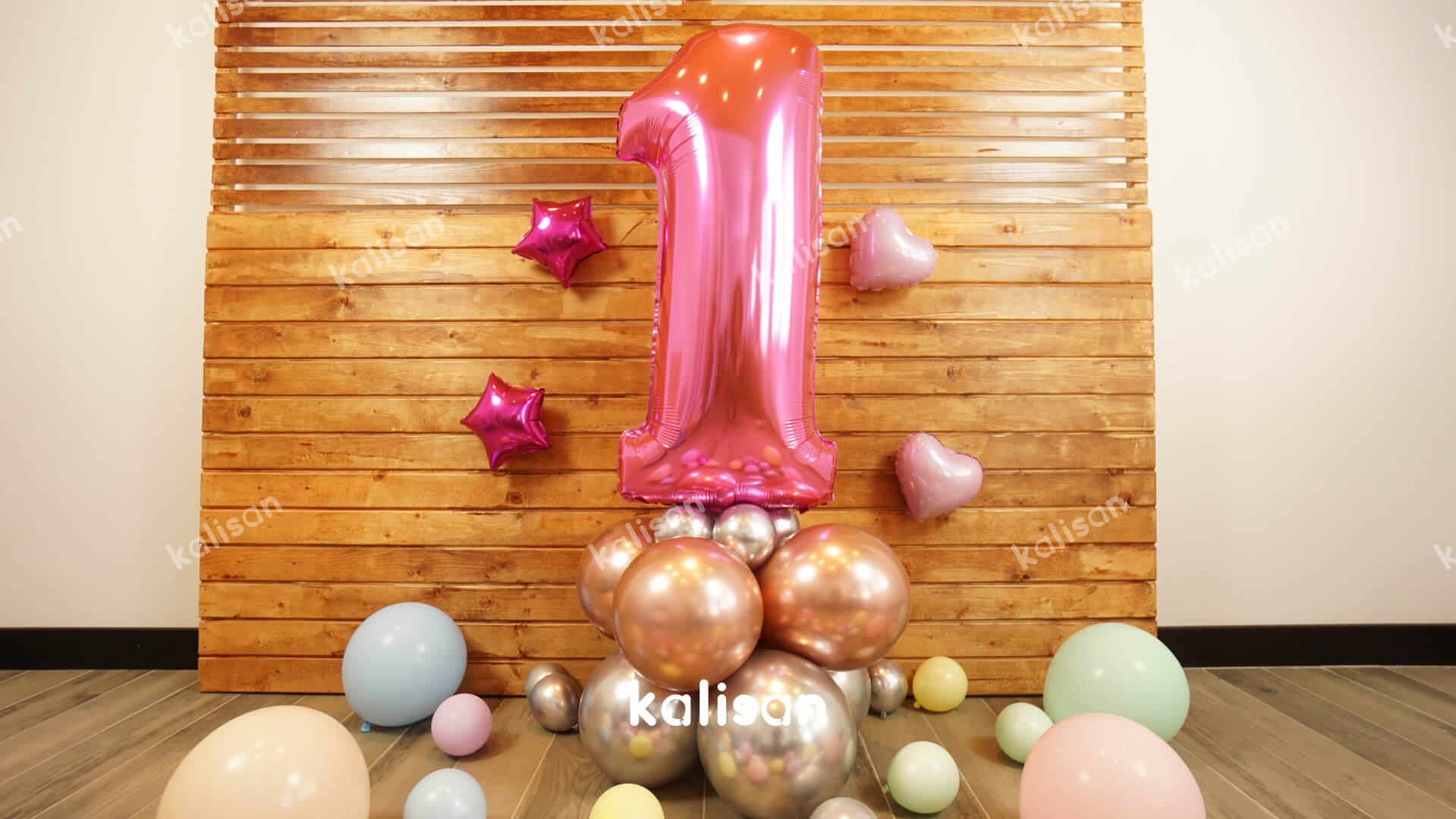 1 yaş doğum günü süsleri ile sınırsız konsept hazırlanabilir. Parti mumları, bannerlar, kağıt püsküller ve konfeti gibi diğer ürünlerle 1 yaş konsepti tamamlanabilir; özgün 1 yaş balon setleri oluşturulabilir. 40″ rakam balonlar her ne kadar helyum gazı ile şişirilerek kullanılabilse de en zengin görüntü örneklerdeki gibi sütun oluşturularak elde edilir. 4’lü ya da 5’li balon zinciri yapılarak üzerine rakam balon giydirilebilir. Folyo balonun dik ve sabit durması için alt sütuna montajında ip yerine balon kullanılmalıdır. Folyo balonun şişirme yoluna bağlanacak balonla daha nizami bir görüntü elde edilir.