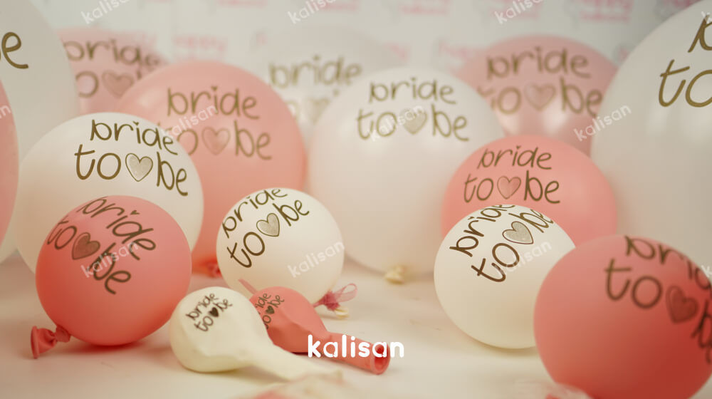 Bride To Be balonlar, beyaz ve pembe karışık paket olarak satışa sunulmaktadır. Düğün, kına gecesi ve fotoğraf çekimlerinde kullanılabilecek bride to be baskılı balonlar Kalisan E-mağaza’da. Fiyat için ürün tablosunu inceleyin. Yerli üretimdir, Kalisan üretici adı ve Happy Balloons markasıyla İzmir’de üretilir. 10’lu ve 25’li ambalajlarda satılmaktadır. Beyaz ve pembe balona gold baskı uygulanmıştır.