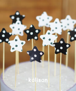 Cake Topper – Yıldız Şekilli Pasta Süsleyici Siyah Beyaz Karalama Desenli