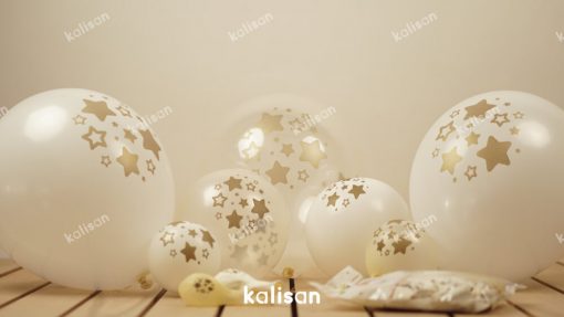 Gold Yıldız baskılı balonlarda beyaz ve şeffaf balonlar kullanılır. Baskı rengi metalik altındır. Yıldız konsept partilerde kullanılabilecek ürünlerdendir. Baskı iki yüzeylidir.