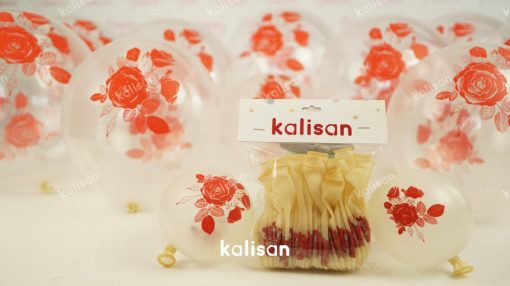 Gül baskılı balonlar, şeffaf üzeri kırmızı ve şeffaf mor üzeri beyaz olarak 2 farklı grupta satışa sunulur. Doğum günü, düğün ve diğer kutlamalarda size özel anları renklendirmek için Gül Desenli balonları kullanabilirsiniz. 10’lu ve 25’li ambalajlarda Kalisan E-mağaza’da satışa sunulmuştur. Fiyat ve çeşitler için ürün tablosunu inceleyin. Yerli üretimdir, Kalisan üretici adı ve Happy Balloons markasıyla İzmir’de üretilir.