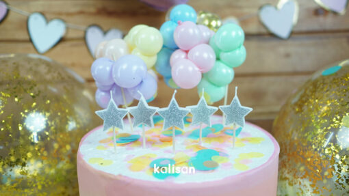 Yıldız şekilli simli mumlar gümüş renk kombininden oluşur. Paket içine 5 adet mum bulunur. Arka yüzeyleri beyaz, ön yüzeyleri simlidir. Ürün kürdana takılıdır ve altlık olmaksızın pastada kullanılabilir. Kürdanla beraber uzunluğu 7,5 cm; mumun uzunluğu 3,5 cm’dir ipi kısadır ve buna bağlı olarak mum kısa süre yanar. Ürün tanıtım videosu: https://www.youtube.com/watch?v=ozlWnS2oRC0