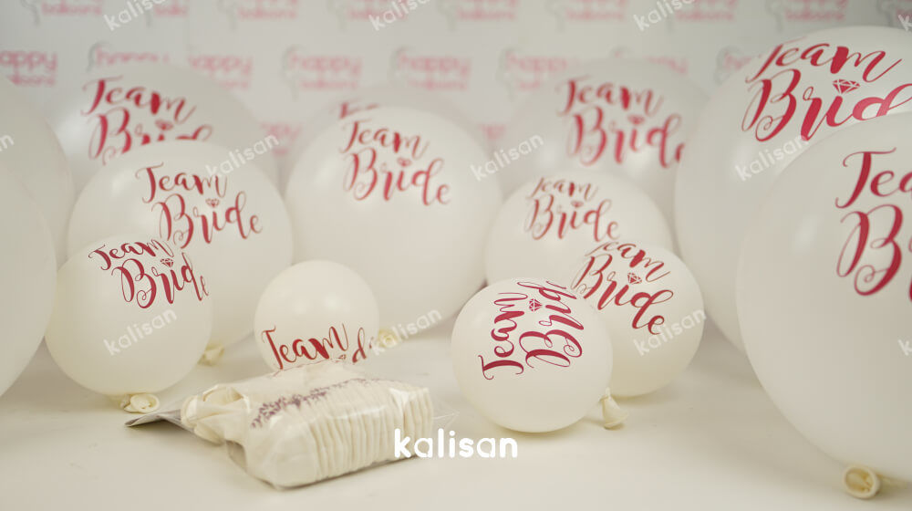 Team Bride balonlar beyaz, pembe ve karışık olarak satışa sunulur. Düğün, kına gecesi ve fotoğraf çekimlerinde kullanılabilecek Team Bride baskılı balonlar Kalisan E-mağaza’da. Fiyat ve çeşitler için ürün tablosunu inceleyin. Yerli üretimdir, Kalisan üretici adı ve Happy Balloons markasıyla İzmir’de üretilir. 10’lu ve 25’li ambalajlarda satılmaktadır.