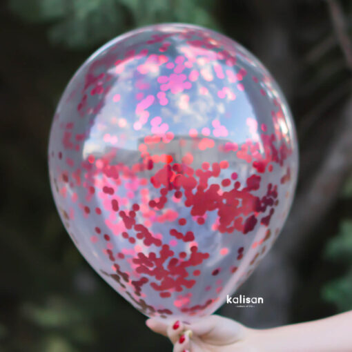 Yuvarlak vişne konfeti çeşitli masa süslemelerinde ve balonlarda kullanılabilen yüksek kaliteli ürünlerdir. Metalik ve parlak görünümdedir. Şeffaf balonlarda kullanılarak konfetili balon yapılabilir. El pompası ve konfeti yapıştırıcı ile kullanılması tavsiye edilir.
